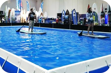 The nine standard sizes available give you the opportunity to choose the right size pool to meet your personal needs. However, should you need a special size, we can build a pool to meet most size requirements. Building custom pools is one of our specialties. We have built pools as small as 4’ x 4’ and as large as 108’ x 312’, along with many imaginable sizes in-between. The same SuperPool used in your backyard has been used for various special and dynamic activities all over the world.
